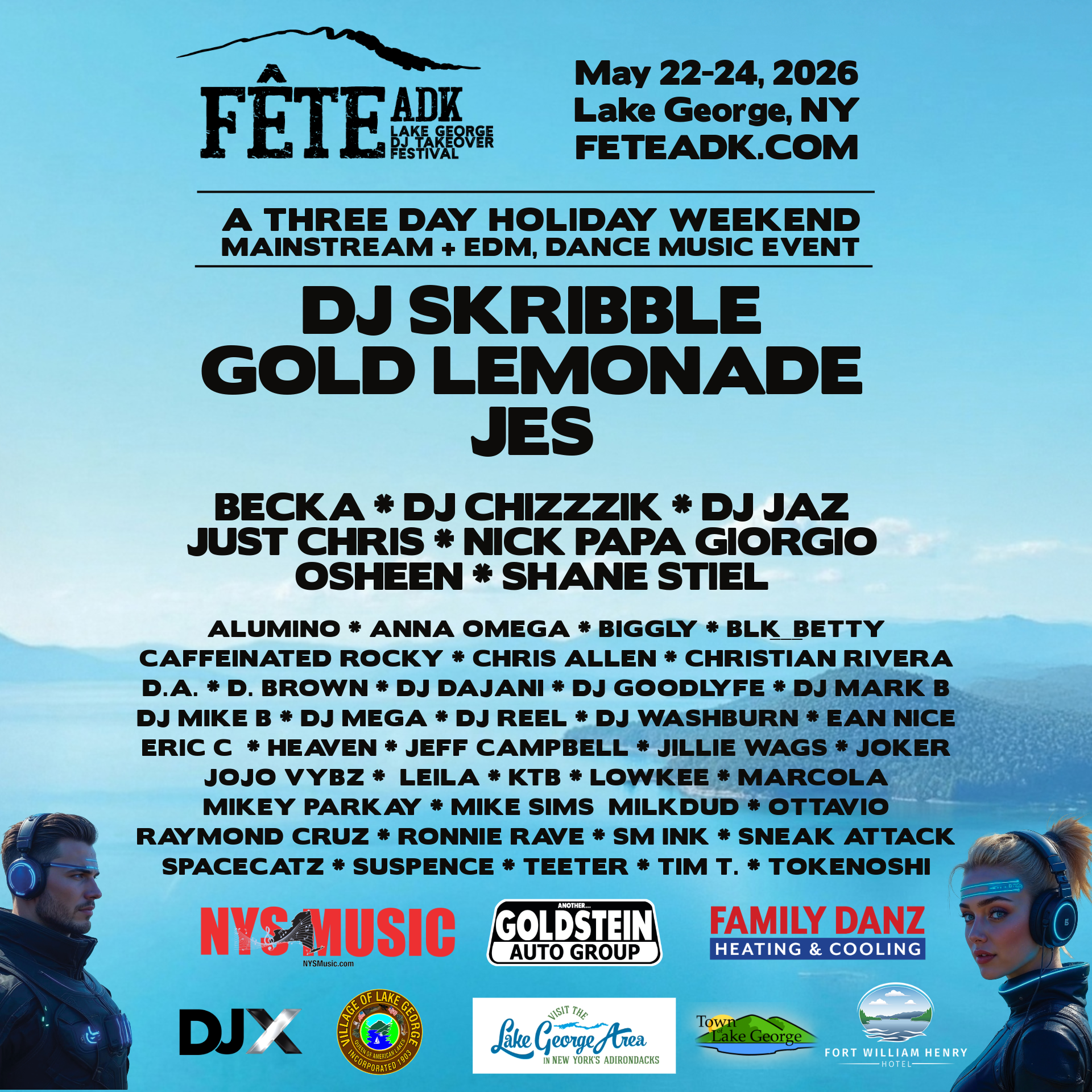 FETE ADK (Pronounced FATE) AKA The Lake George DJ Takeover is a US Veteran owned, mega music event showcasing musical talent and other creators from all over the East Coast in many genres with a focus on high energy dance music.